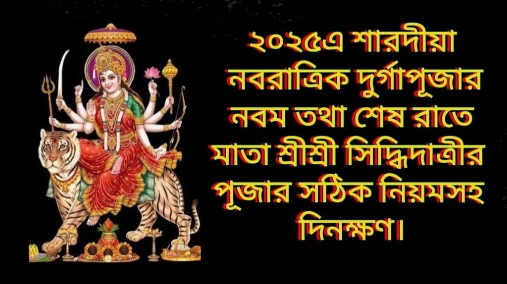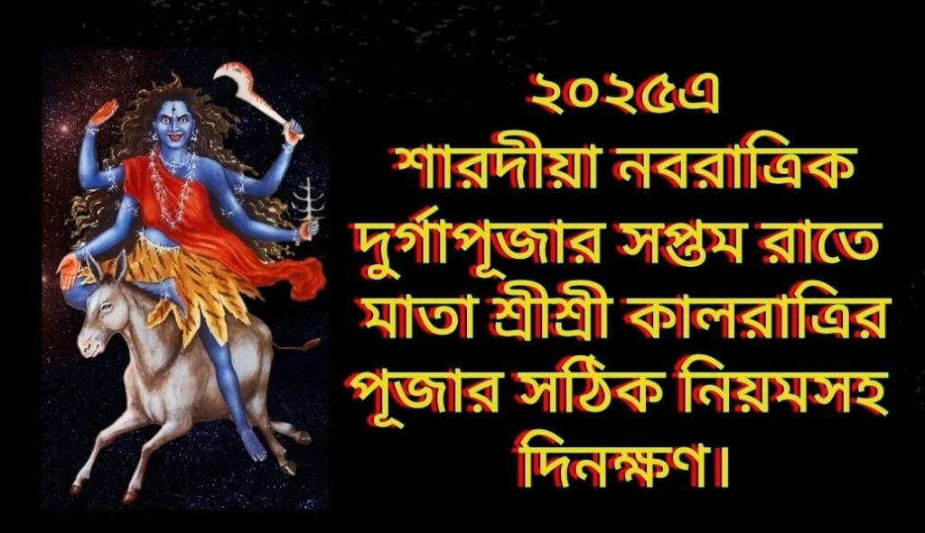 পূজার দিনক্ষণ :- ৬ই সেপ্টেম্বর ২০২৫ বঙ্গাব্দের ৭ই আশ্বিন ১৪৩২  বুধবার রাত্রি ৬টা ২৮ মিনিট থেকে রাত্রি ১০টা ৫৬ মিনিটের মধ্যেই পূজা সম্পন্ন করতে ভুলবেন না।