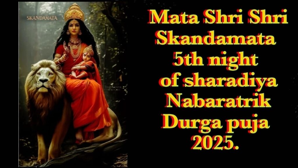 The puja of Mother Shri Shri Skandamata is performed on the fifth night of Navratri. This is the fifth form of Navadurga. The worship of Shri Shri Maa Durga’s son Kartikeya is essential before this puja. By pleasing the Mother in this puja, a childless or heirless person gets a son. The sons of those who have sons become gentle and obedient. An extraordinary divine light and gentle radiance also appear in the body of the sadhak or sadhika.