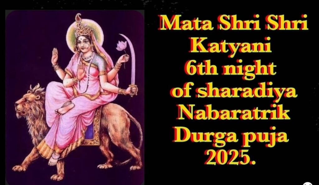 Maharishi Katya’s son, Rishi Katyayan, pleased Shri Shri Maa Bhagavati with much penance and got her as his daughter. So, the name of this form of the Mother is Katyayani. This is the sixth form of Navadurga. For the purpose of restoring heaven and destroying Mahishasura or Ghor Asura, Devi Katyayani became very powerful by receiving the energy from Brahma, Vishnu, and Maheshwar. Devi Katyayani is as radiant as raw yellow or pure gold, seated on a lion, and is four-armed. Her two right hands are in the Abhayamudra (granting fearlessness) and Varadamudra (granting boons), and her two left hands hold a sword and a lotus, respectively. On the sixth night of Navratri, by worshiping Mother Shri Shri Katyayani with reverence, devotion, faith, sincerity, purity, and single-mindedness, the sadhak or sadhika can get rid of diseases, sorrows, obstacles, and fear, and can acquire miraculous powers. This is why, during the Durga Puja festival, from the sixth to the ninth day, the Mother’s puja is celebrated with great pomp in every Durga Puja pandal, and on the tenth day, after applying vermilion, the Mother’s idol is immersed with the family.